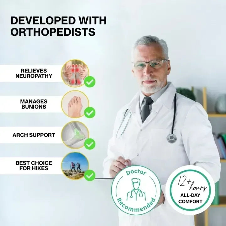 The wide toe design frees your feet from pressure and discomfort. Perfect for those with bunions, arthritis, or swelling. Experience ultimate comfort with no constraints, even during long hours of wear.