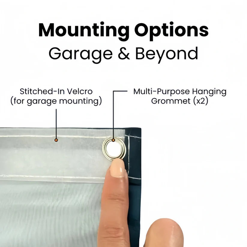 Every JEREMYTIS now comes with a FREE upgraded installation kit that includes our new stitched-in flat elastic bands for the bottom corners and Velcro rolls for the top. Simply stick the top of your Halloween garage door cover to your door using Velcro. Then, hook the elastic bands to the second hinge behind your garage door, and voilà ! You're good to go faster than a witch on a broomstick!