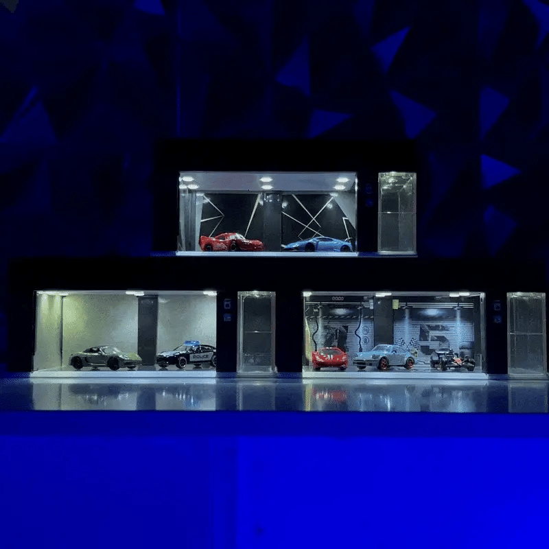 A mini garage and showpiece in one, turning your diecast car setup into an immersive, interactive experience!